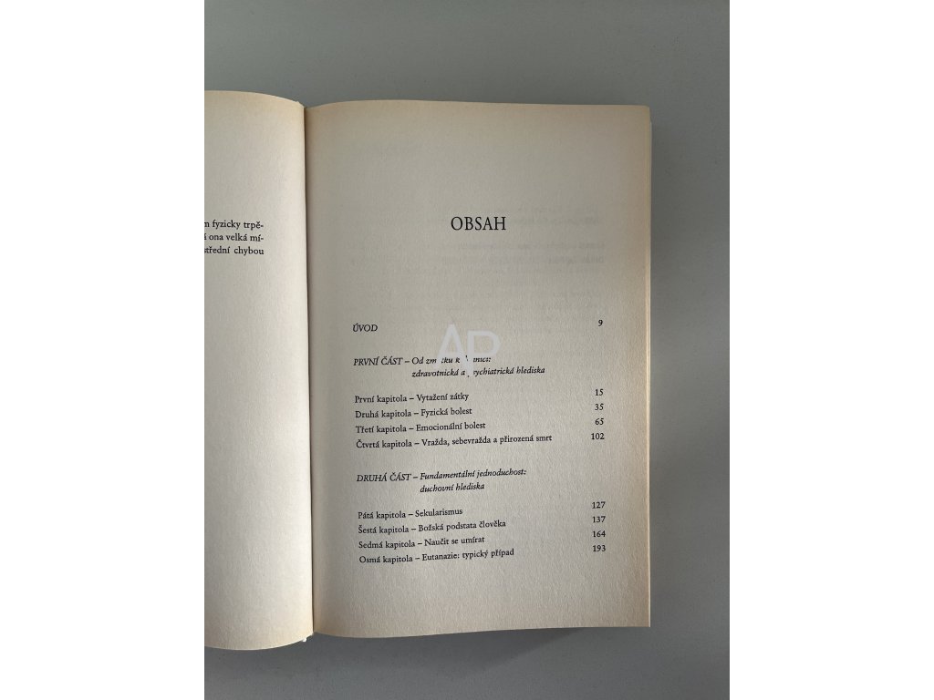 Studie amerického psychiatra a teologa o společenských (světských) a duchovních (náboženských) aspektech eutanazie. Autor jako lékař psychiatr a teolog má za léta praxe dostatek profesionálních zkušeností, aby přispěl do stále otevřenější debaty o eutanazii, a aby pohled na tuto složitou otázku rozšířil o další dosud opomíjená hlediska. V první části této studie pojednává o otázkách bolesti a smrti převážně z medicínského hlediska. Ve druhé, nejzávažnější části, se věnuje především duchovním a etickým otázkám volby mezi přirozenou smrtí a vyžádanou eutanazií. Tady objasňuje i název a záměr této studie. Na závěr se zabývá právními a sociálními hledisky eutanazie. Není to kniha depresivní o smutku a bolesti, naopak je to kniha o hledání, o soucitu a osobním duchovním růstu.