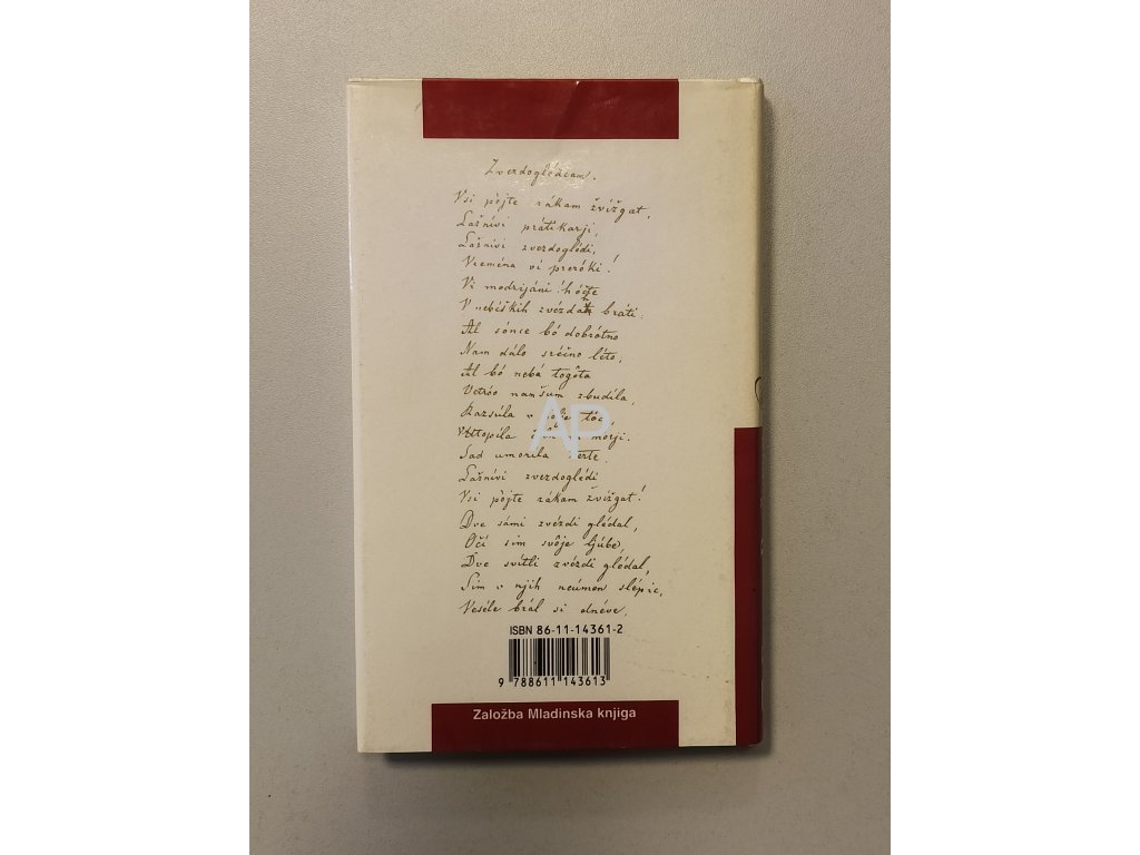 Básnická sbírka France Prešerena v původním slovinském jazyce. Kniha obsahuje výběr poezie slovinského národního básníka France Prešerena (1800–1849), který je považován za nejvýznamnějšího představitele slovinské romantické literatury. Prešeren se věnoval zejména lyrice a jeho dílo formovalo moderní slovinskou poezii. Mezi jeho nejslavnější básně patří například „Zdravljica“, která se stala textem slovinské státní hymny.