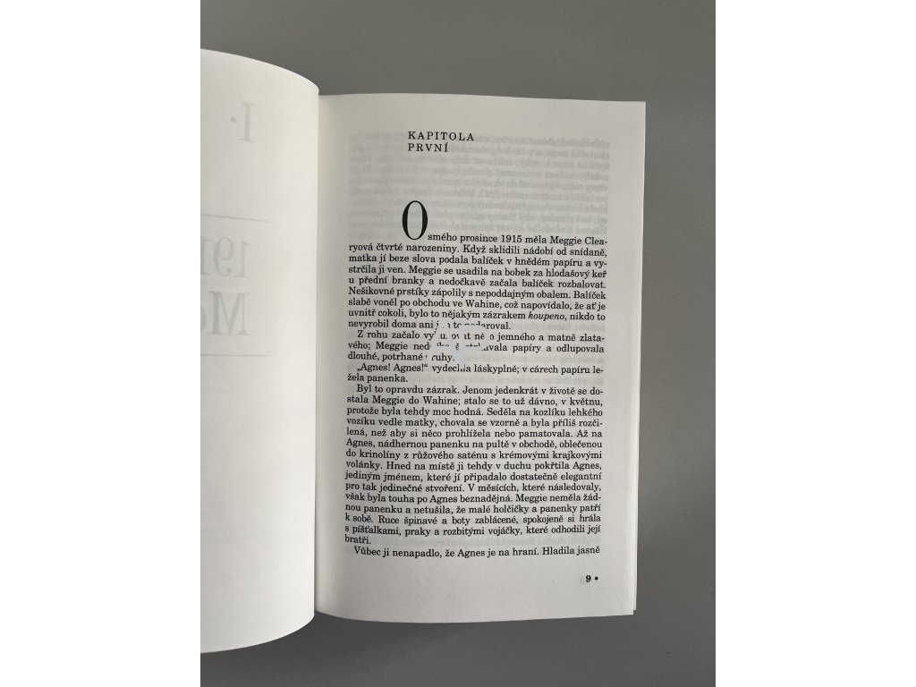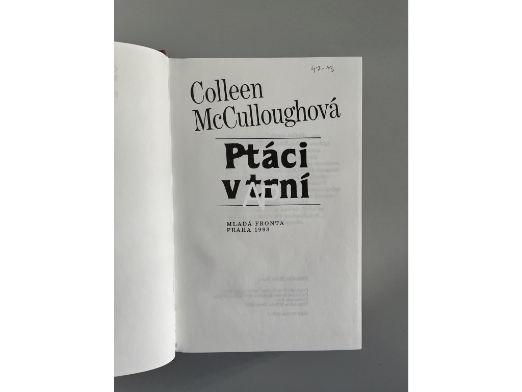 Podmanivý příběh románu Ptáci v trní okouzlil od svého vzniku už miliony čtenářů všech věkových kategorií a ve vysokých nákladech je znovu a znovu vydáván v mnoha zemích světa. Australská prozaička Colleen McCulloughová, volně inspirovaná osudy vlastní rodiny, v něm líčí více než půl století v životě farmářského rodu Clearyů, jehož členové přicházejí počátkem dvacátých let dvacátého století z chudých poměrů na Novém Zélandu na bohatou usedlost v australském vnitrozemí, aby v nadcházejících letech vedli nepřetržitý zápas s drsnou přírodou i následky dramatických zvratů ve vlastním životě. Ze širokého okruhu hrdinů a dějových linií, které zavádějí čtenáře do australské buše, na bojiště druhé světové války i do vatikánských církevních kruhů, vystupují do popředí především nezapomenutelné postavy farmářské dcery Meggie a mladého kněze Ralpha de Bricassarta. Osudově spjatí skrývaným milostným vztahem, sebevědomá a přitom křehká Meggie a ctižádostivý, ale vnitřně rozpolcený Ralph jsou svým poutem celoživotně poznamenáni navzdory dlouholetému odloučení. Podobně jako pták, jenž musí podle úvodní legendy za svou jedinou píseň zaplatit v trnovém objetí životem, platí nakonec za svou touhu i oba hlavní hrdinové. Tragické vyústění opojného i trýznivého vztahu však nemůže potlačit poznání, že jedině odhodláním jít za hlasem vlastního srdce a svědomí a ochotou podstoupit i nejvyšší bolest lze dosáhnout skutečného štěstí.