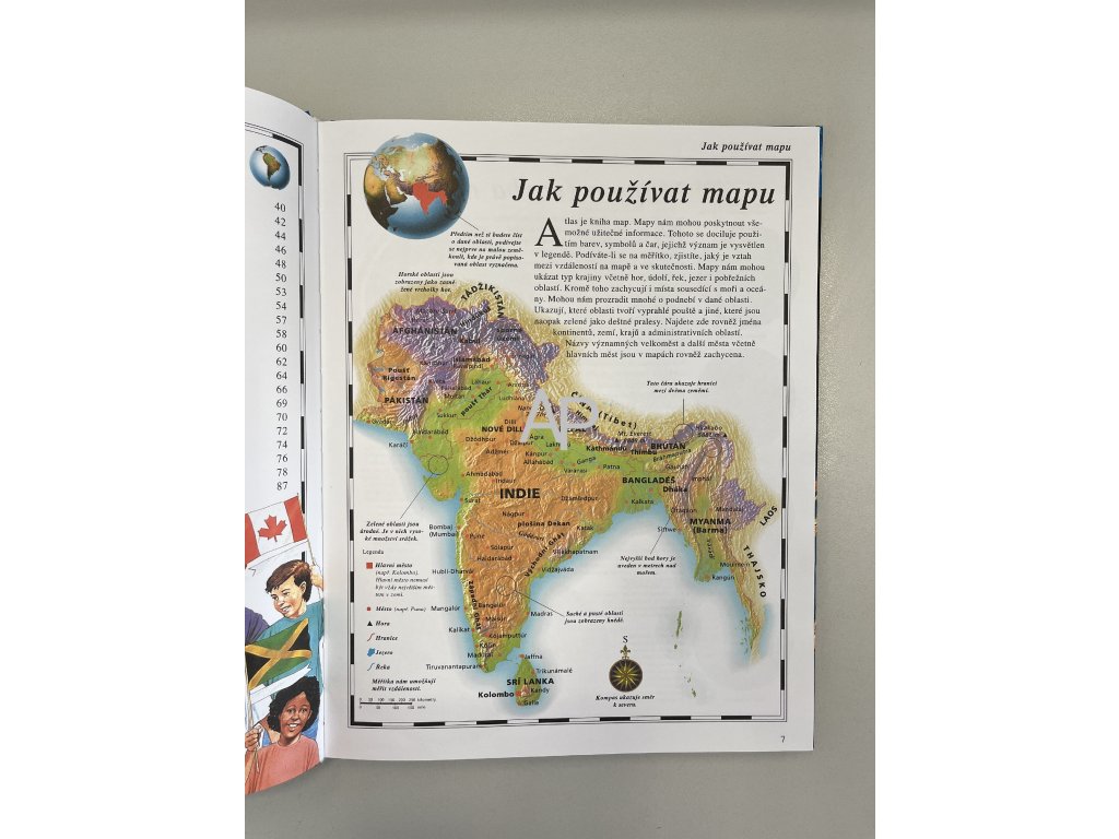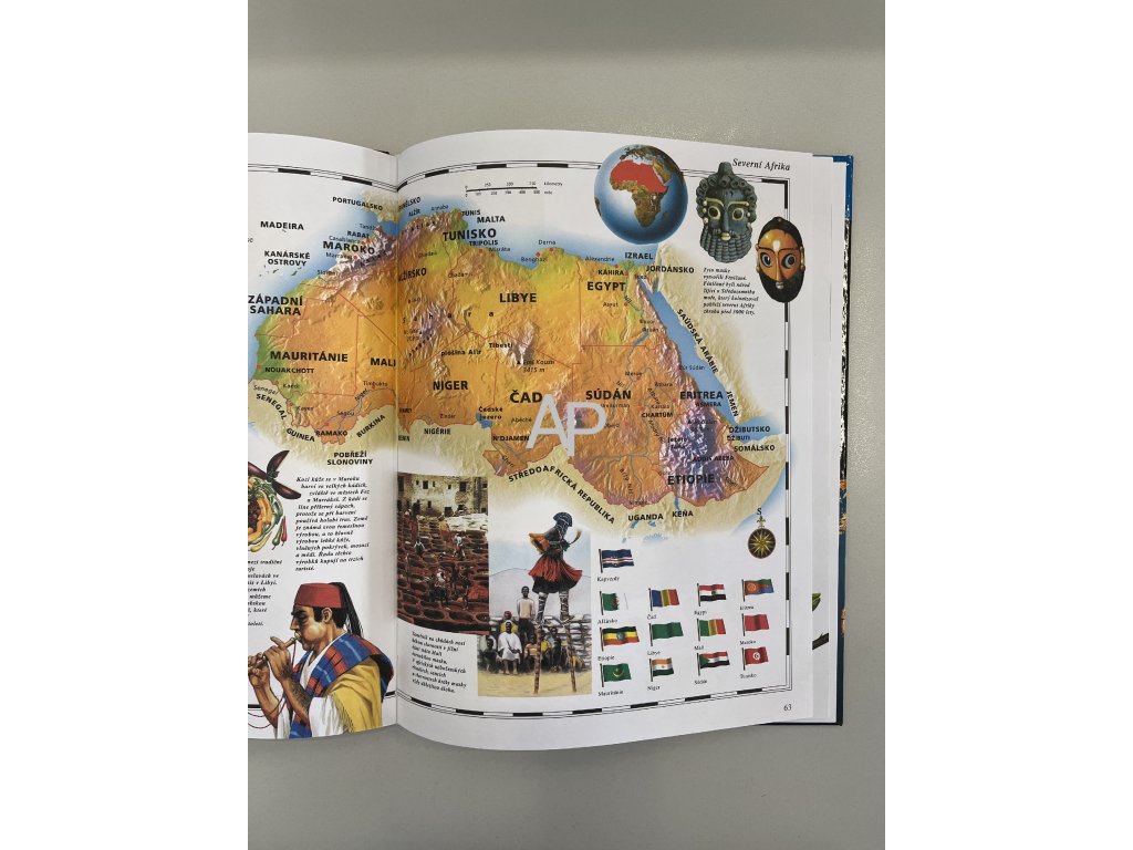 V tomto školním atlase světa jsou použity mapy s cílem stát se co nejnovějším pomocníkem při hledání informací. Atlas je uspořádaný podle světadílů, popisuje krajinu každé země, její architekturu, kulturu, náboženství a hospodářství.