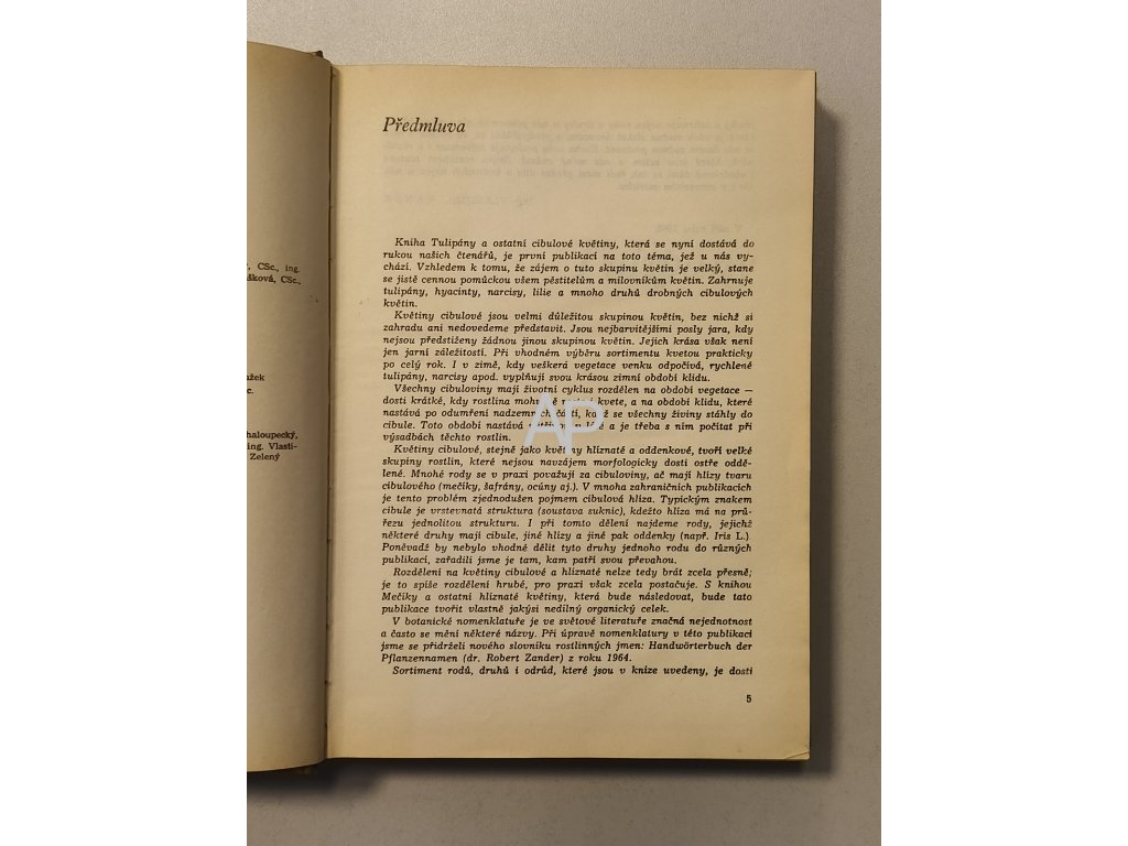 Publikace představuje první komplexní odborné dílo na českém trhu, věnované cibulovitým rostlinám. Zahrnuje tulipány, hyacinty, narcisy, lilie i drobné cibulové květiny. Popisuje historii pěstování, botanické zařazení, šlechtění, množení, biologii, choroby, škůdce i rychlení rostlin. Kniha má pevnou plátěnou vazbu s obálkou, počet stran kolem 422 plus barevné i černobílé přílohy.