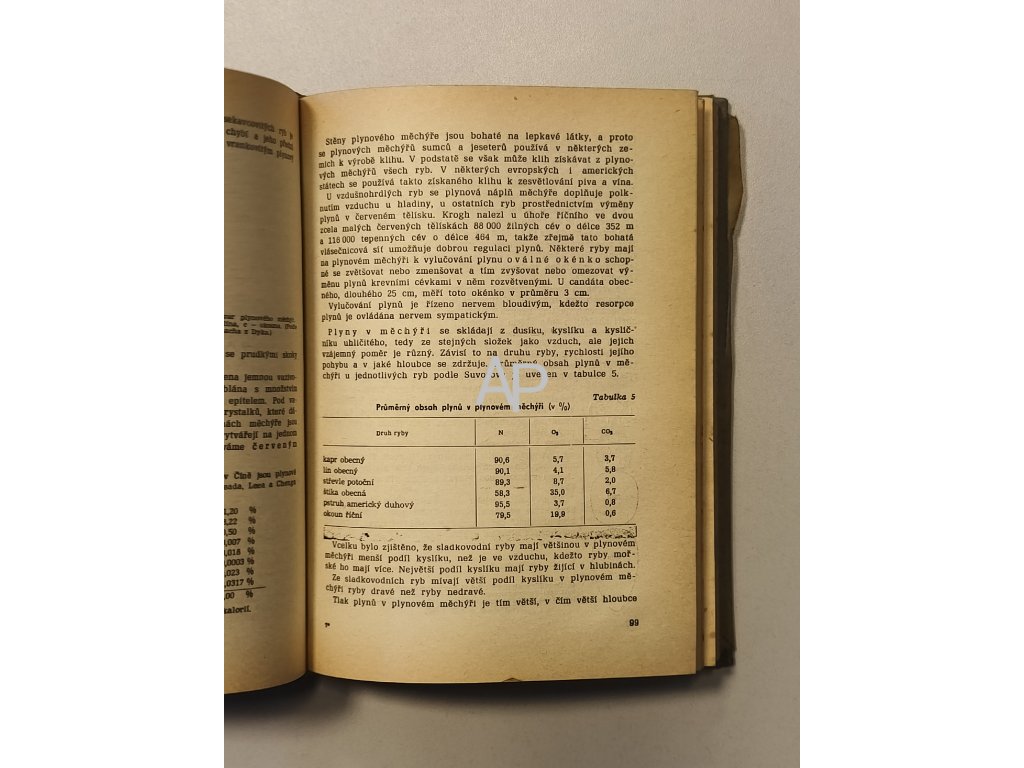 Učebnice pro střední rybářskou technickou školu a rybářské učiliště. Po stručném přehledu o životním prostředí ryb se zaměřuje na jejich anatomii, fyziologii a výživu a všímá si rozpoznávacích znaků jednotlivých druhů, podle nichž jsou roztříděny do 45 řádů, a speciálních technologických postupů při zpracování ryb. V závěrečných oddílech věnuje pozornost nemocem, chovu raků a perlorodky říční.