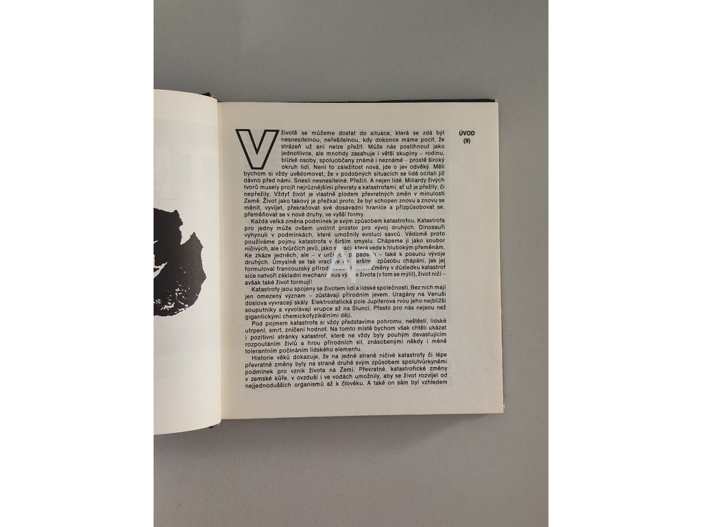 Katastrofa nemusí být vždy katastrofou v obecně chápaném smyslu slova. V průběhu dávných věků, vzdálených od našeho světa miliardy let, se stávala i impulsem dalšího vývoje, dalšího pohybu v před. Život sám je koneckonců plodem vesmírných katastrof. Přežil je jen prto, že byl schopen překročit své hranice, přizpůsobit se, přeměnit se v nový biologický druh. Převratné-katastrofické-změny v zemské kůře i v ovzduší umožnily, aby se život rozvíjel od nejednodušších organismů až k člověku. Obratlovci se ve vodách dusili nedostatkem kyslíku - až vystoupili na břeh. Člověk se třásl zimou v chladu ledových dob - až se naučili ovládat přírodu, zejména oheň. Překročil svým životem své dosavadní možnosti.